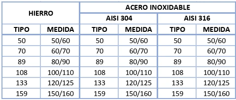 Medidas disponibles: