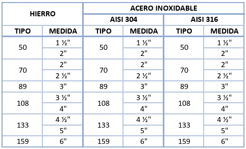 Medidas disponibles:
