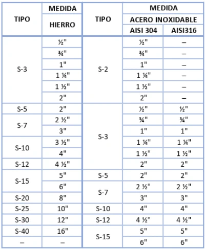Tabla de medidas rótula macho con rosca hembra para manguera